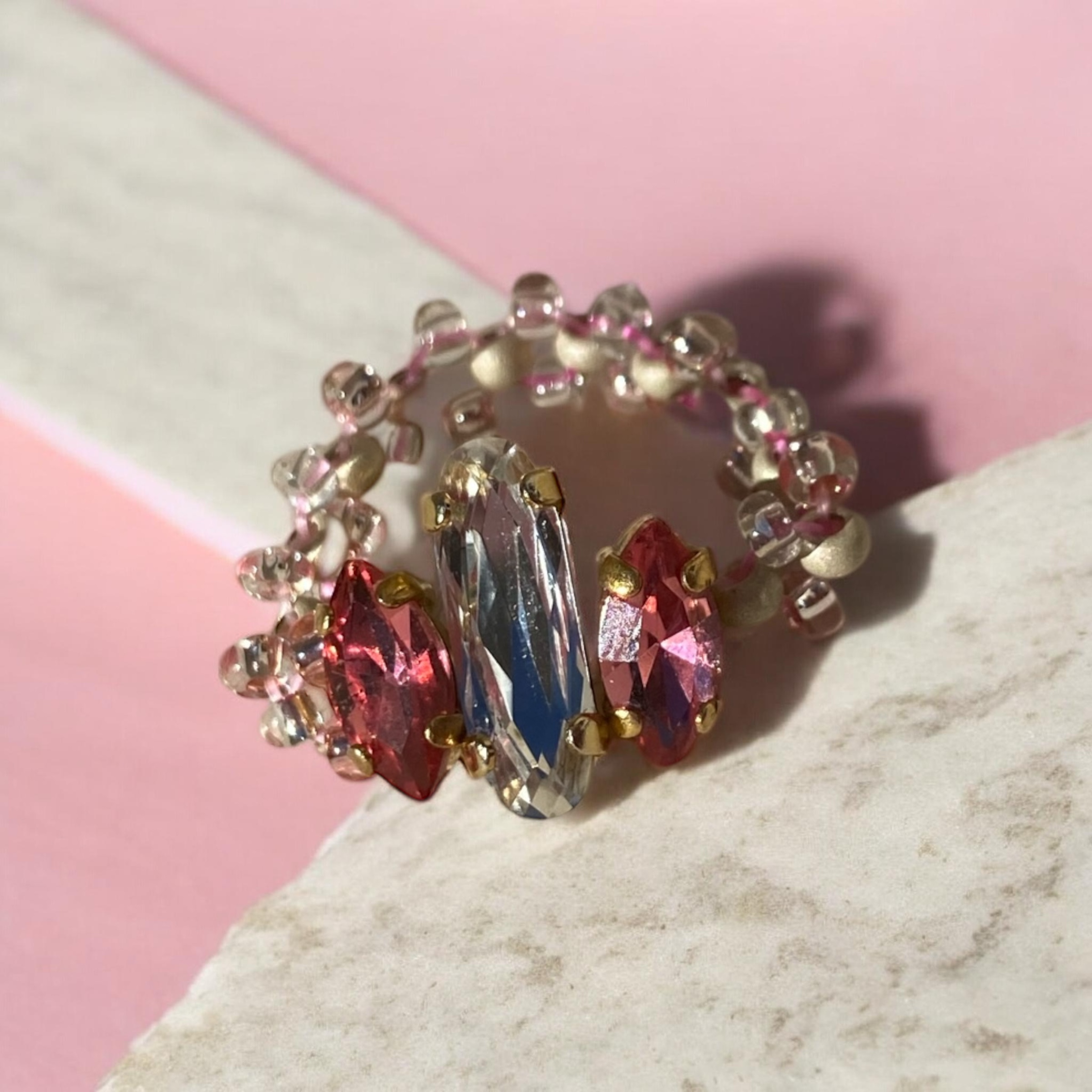 Bague serti crystal Rose (Doré)