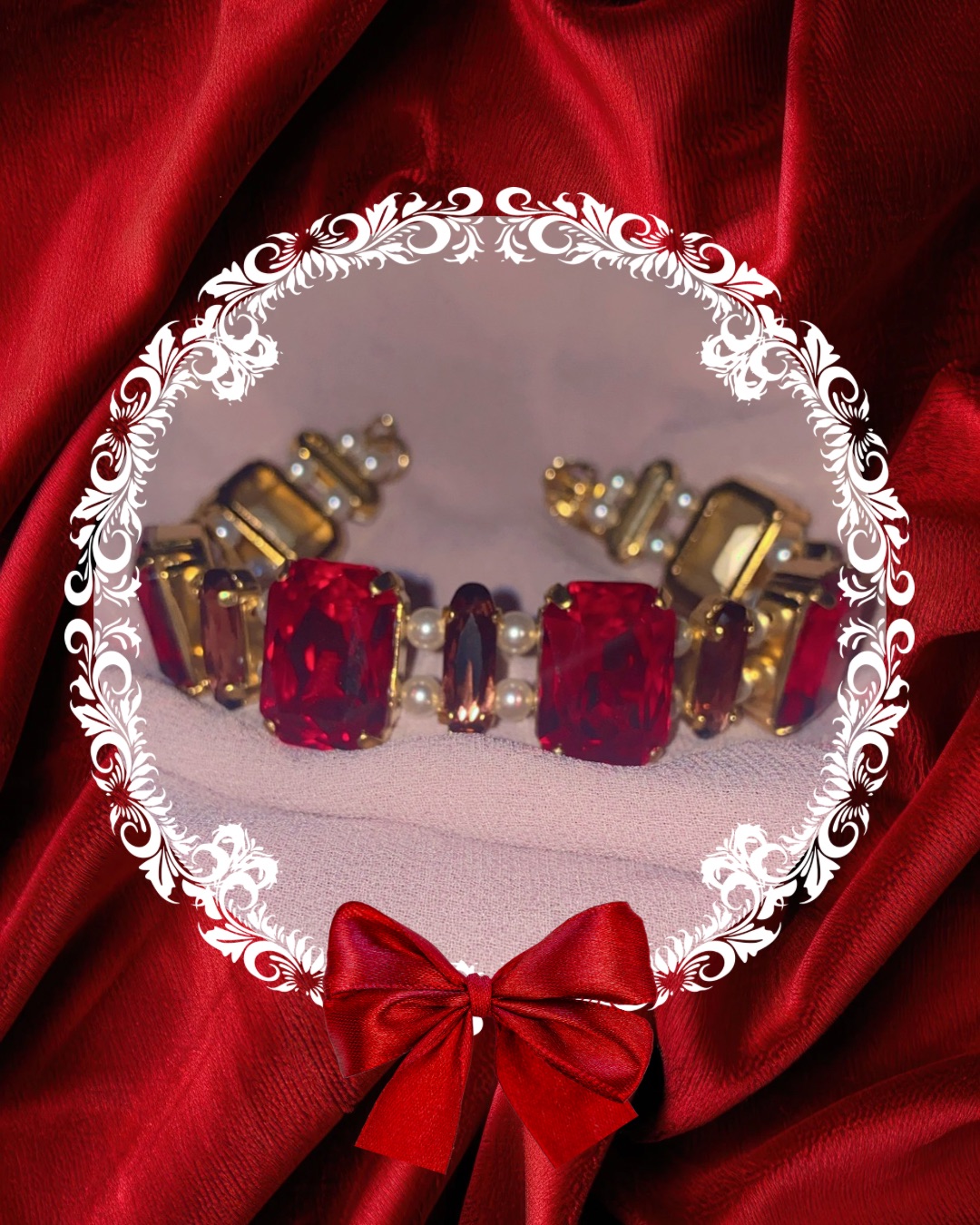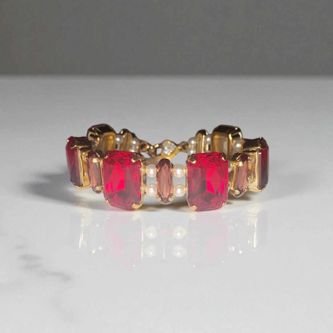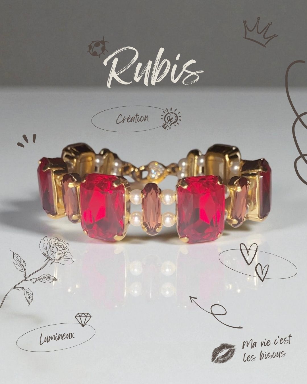 En acier inoxydable, serti de perle de cristal Rouge Rubis